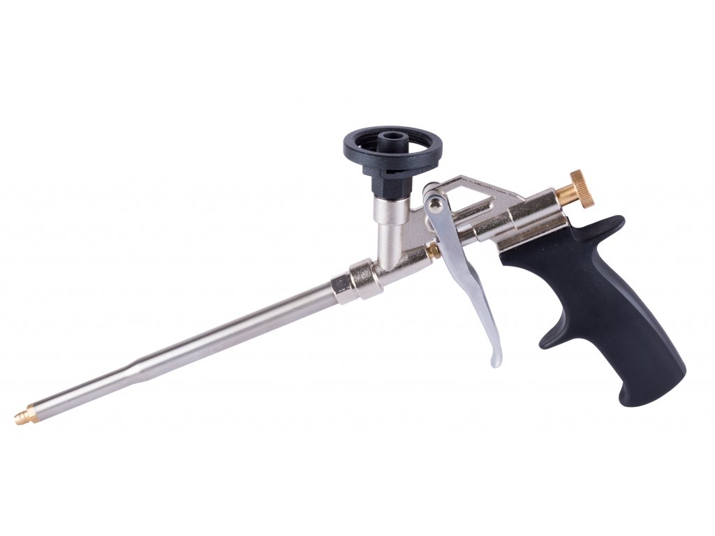 Celokovová aplikačná pištoľ s ergonomickou rukoväťou pre lepšiu manipuláciu. Teflónový závit umožňuje bezpečnú výmenu peny napriek zaschnutiu.