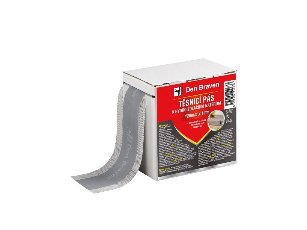 Tesniaci pás tvorí trvale pružné tesnenie rohových a stykových škár v kombinácii s hydroizolačnými nátermi (tekutou lepenkou).