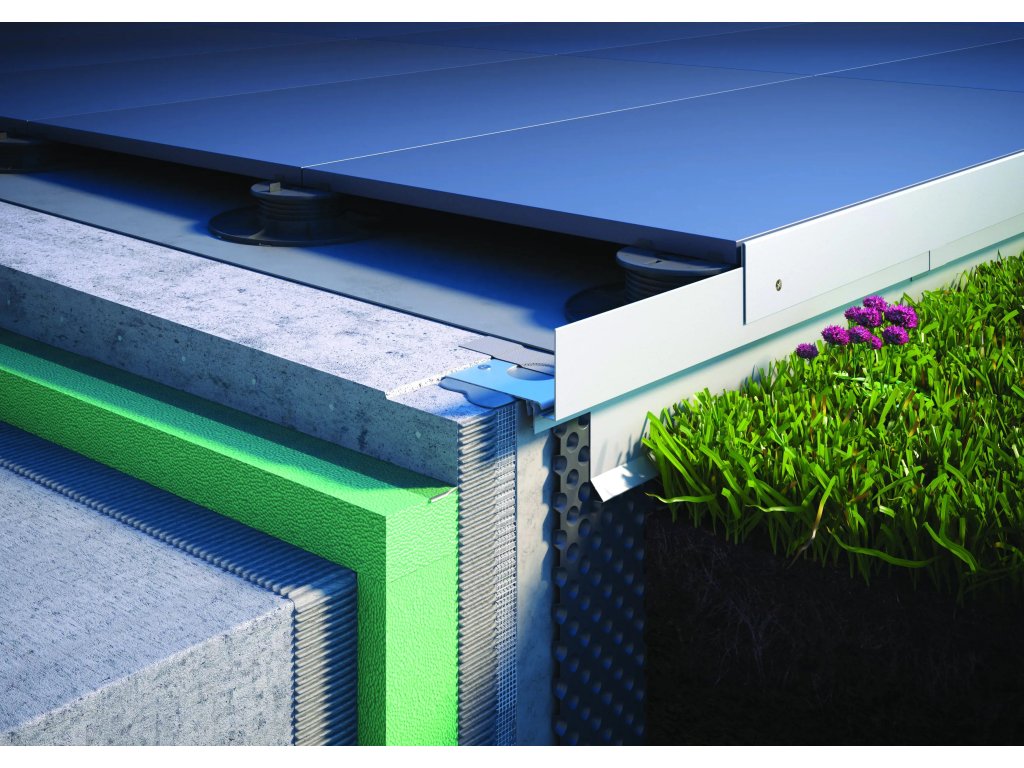 Na profil je možné pripevniť plech STONE/RT+, ktorý dokonale chráni čelo balkóna, terasy, prípadne zakryje opravené čelo po renovácii.