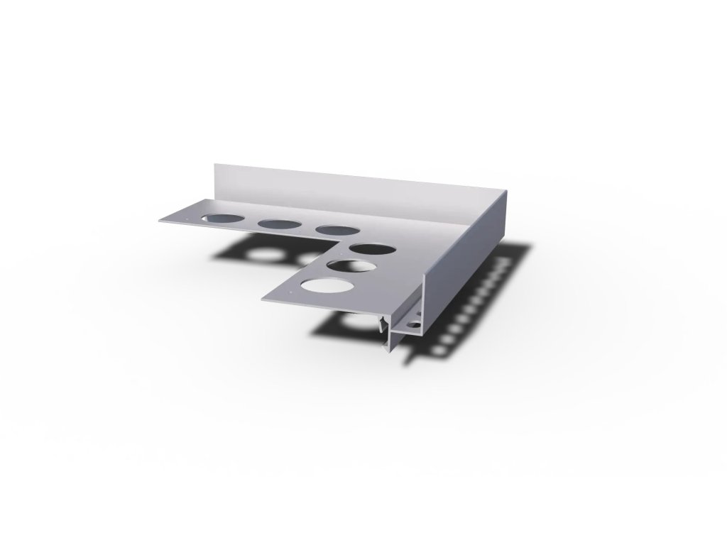 Profil je súčasťou balkónových profilov pre vytvorenie prekrytia okraja terasy pri použití dlažby na rektifikačné terče.