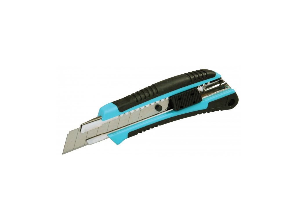 Odlamovací nôž s automatickou aretáciou pri uvoľnení západky. Nôž má štandardnú 18 mm čepeľ.