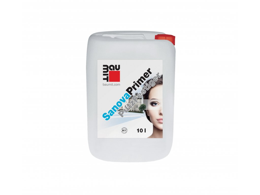 Taktiež na spevnenie a zjednotenie nasiakavosti podkladu pred nanášaním fasádnej farby Baumit Sanova Color a na riedenie tejto fasádnej farby.