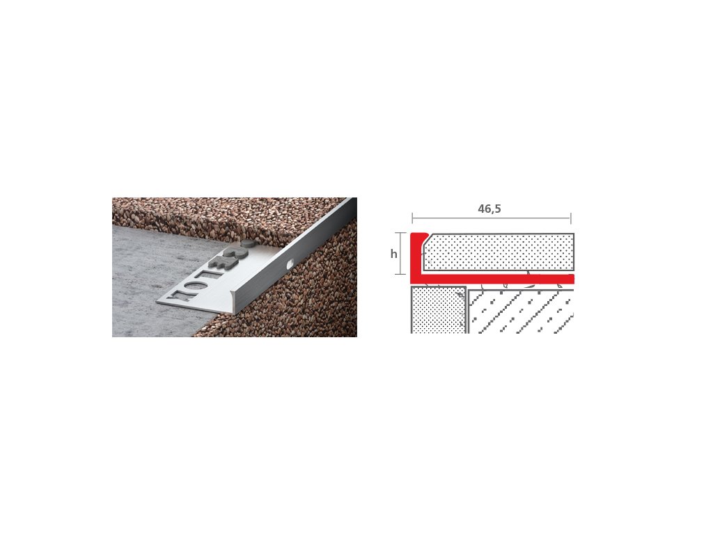 Profil KL - STONE sa používa na ukončenie hrany schodu pri aplikácii kamenných kobercov. Otvory pozdĺž profilu zabezpečujú odvod vodných pár, prípadne vody.