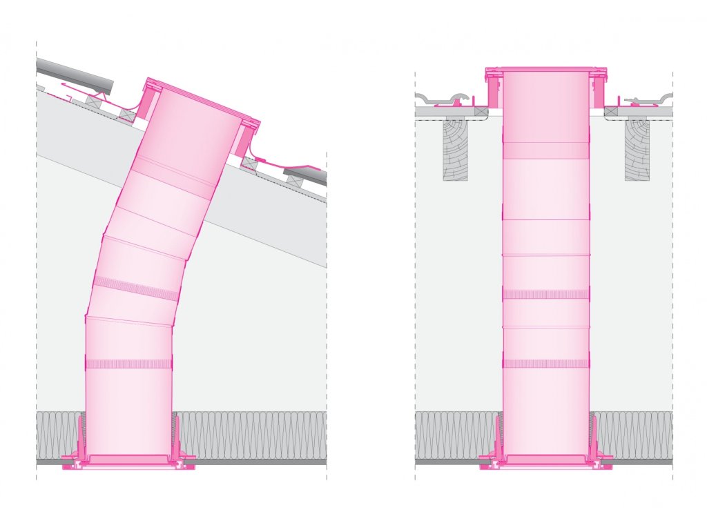 - Koleno určené k zalomeniu svetlovodného tubusu v rozsahu 0-65 °. Pre svetlovody s priemerom 550 mm dostupné ako voliteľný diel.